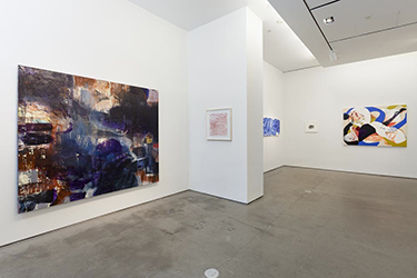 In their written notes about the exhibition, Condon and Prusa point out that, by “[f]loating, pouring and sweeping liquid pigment on canvas and panel, alone or in combination with ‘dry’ applications, such as drawing and collage,” the artists whose works are on view “redefine form and space in terms of speed, texture and depth.”