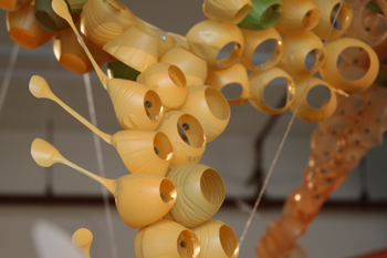 Right now, “Sacrifice + Bliss,” an exhibition of Robson’s most recent works, is on view at the Franklin Park Conservatory and Botanical Gardens in Columbus, Ohio (through April 28, 2013). One of the more unusual venues in which the artist’s sculptures have been presented to date, the conservatory, with its diverse horticultural collections and global climate zones, provides a provocative and relevant setting for her works, whose bushy, organic forms bring to mind those of exotic plants on land or under water.