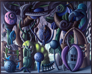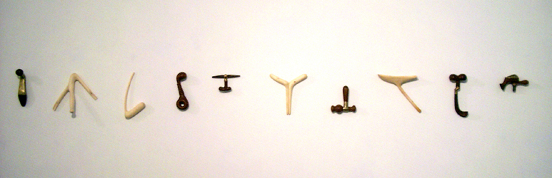 Globalization Factory (2009), a mixed-media work by the Cuban artist Abel Barroso: Based in Havana, Barroso has been interested in what might be called his country's low technological literacy level. Mobile phones, computers and the wide range of everyday, electronic gadgets that consumers in many other parts of the world take for granted are still rare in Cuba, where Internet service is slow and cumbersome, and allowed by the government only in certain hotels, for use by foreign tourists. The government also grants artists, writers and academics who are members of a national, cultural-workers organization limited access to e-mail and the Internet. As Barroso sees it, Cuba is as isolated technologically as it is politically and economically from much of the rest of the world, and it has a lot of catching-up to do. The artist works in wood, carving detailed, oversized replicas of common electric or electronic devices, such as blenders, TV remote controls, mobile phones and laptop computers. Barroso's chunky, exaggeratedly large, wooden copies of these high-tech items call attention to the ways in which, for many Cubans, who can only dream of ever owning the real things, such sophisticated consumer products have become fetishized objects of desire.