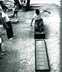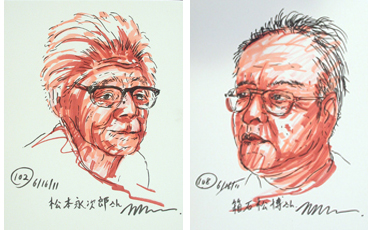 Above, left to right: In the spirit of Fujimoto's "type walk," I went out into the seaside town of Zushi, just south of Tokyo, to look for and photograph examples of one-of-a-kind or rare Japanese type designs. The sign on the left is for an optical shop, the neon sign in the middle is for a pachinko parlor (pachinko is a popular Japanese pinball game), and the label on the right, whose main, large characters indicate a brand name, "White Snow," appears on a cask of sake, or Japanese rice wine. Photos by E.M.G. |