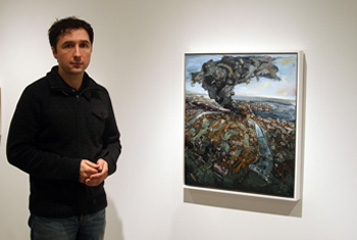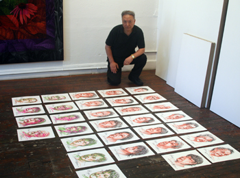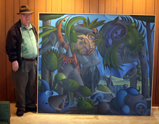 New paintings by Jon Waldo and the artist himself in his New York studio; painted with pop-art vigor and a nod to 1970s record-album design, these works celebrate the appeal of ordinary, everyday objects at a time when what is most basic in life might really turn out to have more lasting value than all that is over-hyped, over-priced and over-exposed in the media. Photos by E.M.G. |