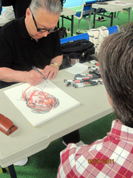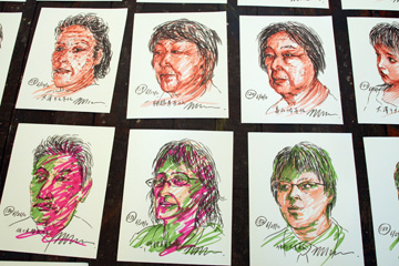 Oda makes mixed-media drawing-collages whose abstract imagery suggests dense constellations. Otsuka makes drawings and paintings with fine, fluid lines of young women and men in sexy poses. Mariko Suzuki creates both fine-lined drawings of imaginary worlds and also small-scale felt sculptures that she uses to illustrate children’s stories, and Yuko Suzuki makes what she calls “woodcut drawings” - 3-D, wall-mounted line drawings of not-so-innocent, innocent subjects (like a teddy bear that has been stabbed through the chest with giant pencils).