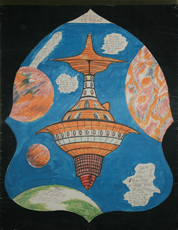 Above, left to right: Gutai artist Shozo Shimamoto's wooden sculpture, Please Walk On Here (1956), which invited viewers to walk across it, was first displayed in a public park; the front and back sides of Gutai artist Atsuko Tanaka's synthetic-paint-on-canvas painting, Work (1961), which is now owned by the Osaka City Museum of Modern Art in Japan; and the cover of the eleventh issue of the Gutai group's own, eponymous publication, which featured photos of its "International Sky Fetival," in which artworks were suspended from helium balloons that had been launched from the rooftop of a department store in Osaka. Photos courtesy of Solomon R. Guggenheim Museum's press office. |