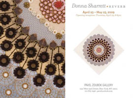 NEW YORK - I first wrote about the American artist Donna Sharrett in 2000 in an article for the New York Times on the occasion of her solo exhibition at the Everson Museum of Art in Syracuse, New York. I was struck by Sharrett’s imaginative use of both common and unusual materials, and by her blending of traditional craft-making techniques and modernist aesthetics to create highly original works that were not exactly conventional collages or wall-mounted sculptures. Sharrett’s work consistently blurs the line between “craft” and “fine art,” at least as far as those rather limited - and limiting - category-defining terms usually have been used in the United States. Now, after a period of labor-intensive, all-by-hand production that lasted a few years, Sharrett has emerged from her studio in the lower Hudson Valley, just north of Manhattan, to present her newest group of mixed-media creations. They’re on view at Pavel Zoubok Gallery in New York through May 23 in an exhibition entitled “Reverb,” for which I wrote the following introductory text. (This brief note appears on the card that has been produced to document this exhibition.)