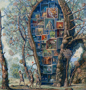 We all share, she observes, “a basic desire or need to remember.” With imagination and skill, in works whose richly elaborated, round-shaped compositions evoke the simple form of the ring, a symbol of the everlasting and of time as a cyclical whole made up of past, present and future, Sharrett continues to explore - and to honor - that unshakable impulse to look back that is an enduring mark of the human spirit.