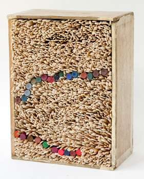 Echoes, repeating rhythms, reverberations of thoughts, emotions, sights and sounds - such are the movements in the heart and in the mind that have become both the fleeting subjects and, along with beads, dried rose petals, used clothing and even copper-penny coins, some of the raw materials of Donna Sharrett’s distinctive art.