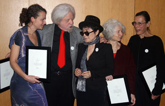 In recent days, Ono has been in the United Kingdom, fresh from a soujourn in Venice, Italy, where she received the Golden Lion Award for Lifetime Achievement on June 6 from the organizing committee of the 2009 Venice Biennale. In Venice, at the Palazzetto Tito of the Fondazione Bevilacqua La Masa, in an event that is taking place outside of but concurrent with the Biennale, Ono is presenting “Anton’s Memory,” an exhibition of old and new works. It will remain on view through September 20, 2009.